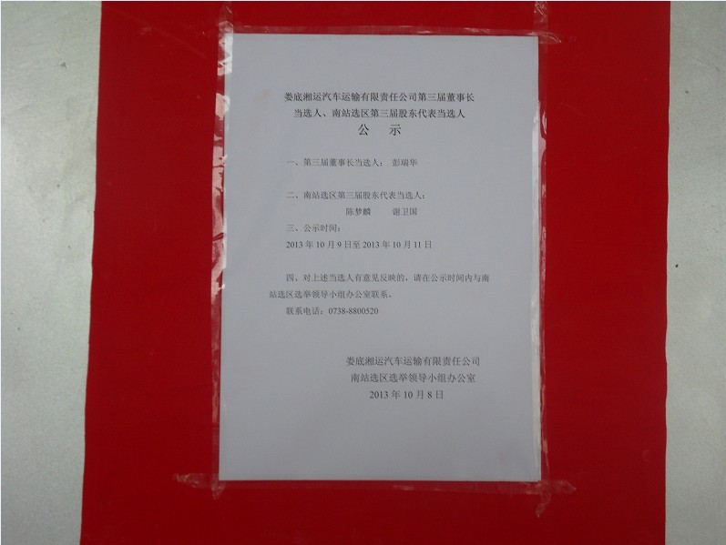 公司董事長當選人、南站選區(qū)股東代表當選人公示