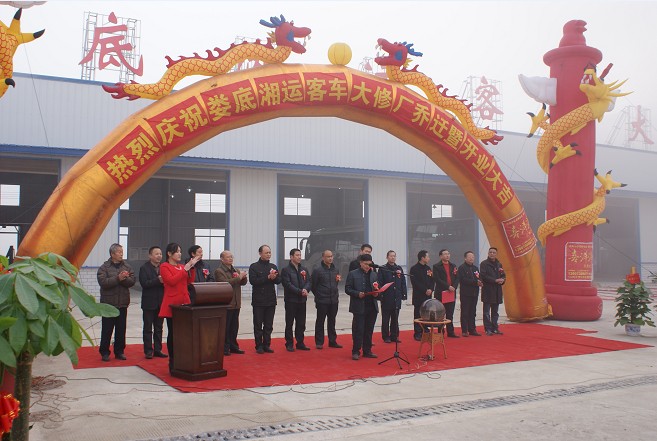 首先,婁底湘運客車大修廠廠長鄧國贊致歡迎辭,他對各級領導、嘉賓、各界人士親臨慶典儀式表示衷心的感謝,他在致辭中說,在短短九天時間,老廠順利搬遷至新廠,如期開業(yè),離不開各級領導、各界朋友的鼎力支持,真誠期盼各位在今后工作中一如既往給予支持。他表示將以此次喬遷為契機,秉承 “質(zhì)量第一、客戶至上”的服務宗旨,以嶄新的面貌、務實的作風、創(chuàng)新的精神,為廣大客戶提供及時、周到、優(yōu)質(zhì)的服務,將婁廠打造成全市汽車修理行業(yè)一流的卓越品牌。