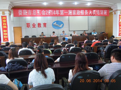 2014年6月20日上午9點,由婁底湘運職業(yè)技術培訓學校承辦,婁底市總工會主辦的2014年第一期家政服務員培訓班在湘運職業(yè)技術培訓學校五樓教室隆重舉行開班儀式,市總工會黨組成員、工會副主席譚紅衛(wèi),婁底湘運公司董事、副總經(jīng)理兼工會主席謝克明等有關領導出席開班儀式。