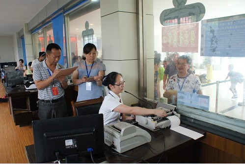 一等獎獲得者顏小麗(前一)售票操作