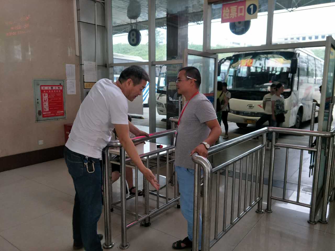在冷水江分公司,檢查組一行到三品檢查崗,查看三品檢查臺(tái)帳及有關(guān)工作情況;到候車廳了解人證識(shí)別通道閘機(jī)安裝使用情況;在出站檢查室,彭總親自登錄公司客運(yùn)一卡通系統(tǒng),查看車輛出站檢查記錄等,要求分公司負(fù)責(zé)人不斷加強(qiáng)自身學(xué)習(xí),抓好對(duì)員工三品識(shí)別、檢查等安全生產(chǎn)業(yè)務(wù)知識(shí)及操作技能的培訓(xùn);要充分利用好人證識(shí)別通道閘機(jī)等配套設(shè)備設(shè)施,進(jìn)一步抓好車站封閉式管理工作;要充分發(fā)揮客運(yùn)一卡通等系統(tǒng)功能,進(jìn)一步規(guī)范管理,促進(jìn)安生生產(chǎn)標(biāo)準(zhǔn)工作常態(tài)化。
