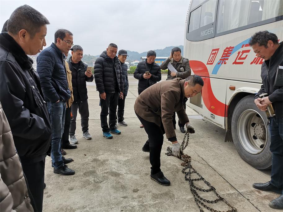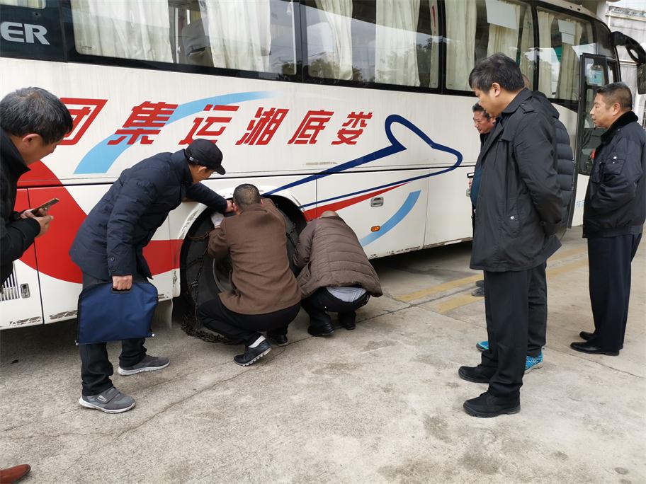 根據(jù)氣象預(yù)報(bào)發(fā)布,我市將持續(xù)低溫雨雪冰凍惡劣天氣,給老百姓工作、生活以及交通出行帶來(lái)極大影響。為將惡劣雨雪冰凍影響降到最低,確保旅客平安出行,婁底湘運(yùn)集團(tuán)嚴(yán)陣以待,積極應(yīng)對(duì),落實(shí)責(zé)任,提前啟動(dòng)冰雪惡劣天氣應(yīng)急方案,扎實(shí)做好各項(xiàng)防范措施以及安全生產(chǎn)工作。一、公司召開安全例會(huì),提前就冬季安全工作進(jìn)行全面布置,重點(diǎn)部署了即將到來(lái)的低溫雨雪冰凍惡劣天氣安全工作。二、組織各單位安全副經(jīng)理、安技辦主任等現(xiàn)場(chǎng)觀摩防滑鏈安裝演練,要求安全管理工作中高標(biāo)準(zhǔn)督促駕駛員落實(shí)。三、通過(guò)安全QQ、微信群、電話等及時(shí)轉(zhuǎn)發(fā)天氣預(yù)報(bào),針對(duì)性采取防范措施。四、充分利用動(dòng)態(tài)監(jiān)控,第一時(shí)間掌握車輛的運(yùn)行狀態(tài),對(duì)在外運(yùn)行的班車逐臺(tái)查詢,對(duì)全司所有車輛每隔2小時(shí)發(fā)布惡劣天氣預(yù)警,五、要求各單位做好防冰防寒防滑以及安全警示警告及班次停運(yùn)通知公示工作,六是增派問(wèn)訊人員,及時(shí)給廣大旅客做好停運(yùn)解釋工作,要求所有售票窗口不收取任何退票手續(xù)費(fèi),免費(fèi)提供熱開水,開放空調(diào)候車室等保暖工作。七是加強(qiáng)對(duì)各單位冬季安全工作督查力度。29日晚婁底迎來(lái)降雪,安全副總羅雄雁率安技部人員冒雪前往婁底車站南站檢查,并來(lái)到監(jiān)控中心,通過(guò)監(jiān)控平臺(tái)對(duì)全司車輛狀態(tài)以及按要求停運(yùn)車輛情況進(jìn)行重點(diǎn)檢查,對(duì)各單位防滑防冰保暖警識(shí)牌設(shè)立、值班值守情況進(jìn)行了現(xiàn)場(chǎng)落實(shí)與督辦。