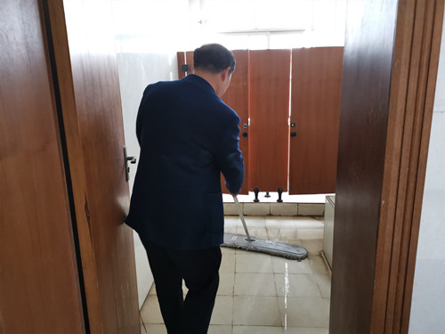 3月13號,是輪值衛(wèi)生的第一個星期,總部五樓衛(wèi)生由審計部負責,公司監(jiān)事、紀委書記黃文和審計部的同事把五樓男女廁所、樓梯、走廊過道衛(wèi)生里里外外打掃得干干凈凈。負責三樓衛(wèi)生的黨群部部長鐘愛華和四樓衛(wèi)生的保衛(wèi)部部長姚邵洪也是帶著部門同事一起打掃衛(wèi)生。