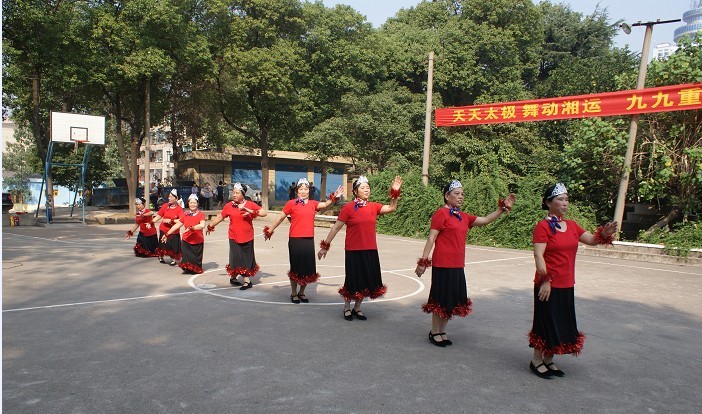 九時(shí)許,在歡快喜慶的腰鼓聲中 “天天太極 舞動(dòng)湘運(yùn) 九九重陽(yáng)”聯(lián)誼演出拉開(kāi)了序幕。