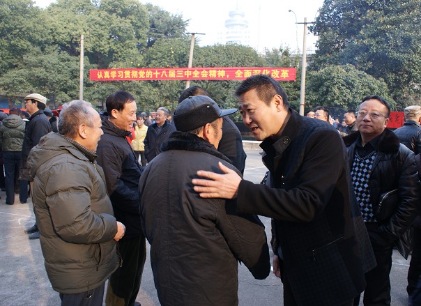 公司董事長兼總經(jīng)理彭瑞華與老同志親切交談